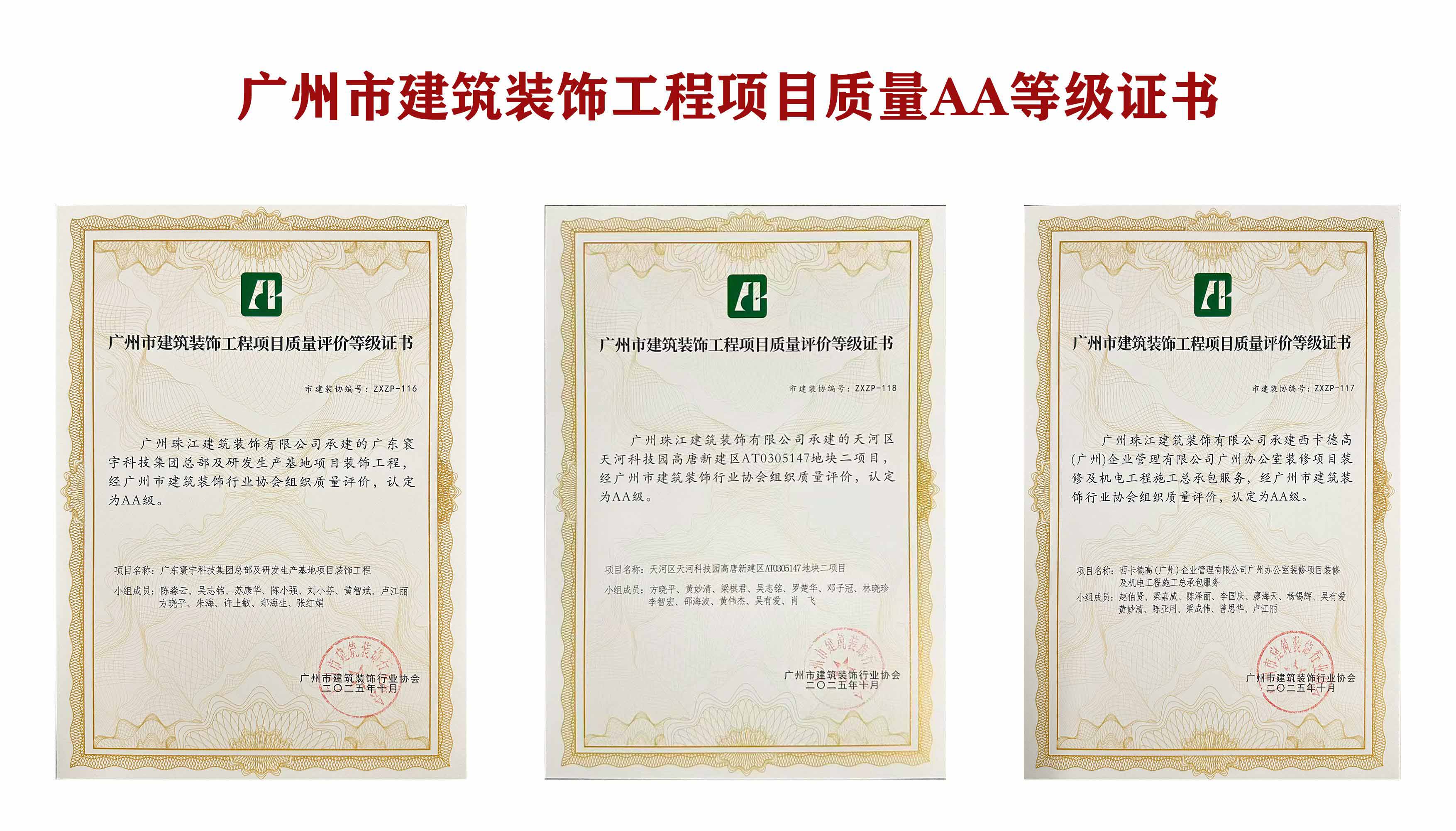 喜报!珠江装饰三项工程荣获广州市建筑装饰工程项目质量评价殊荣